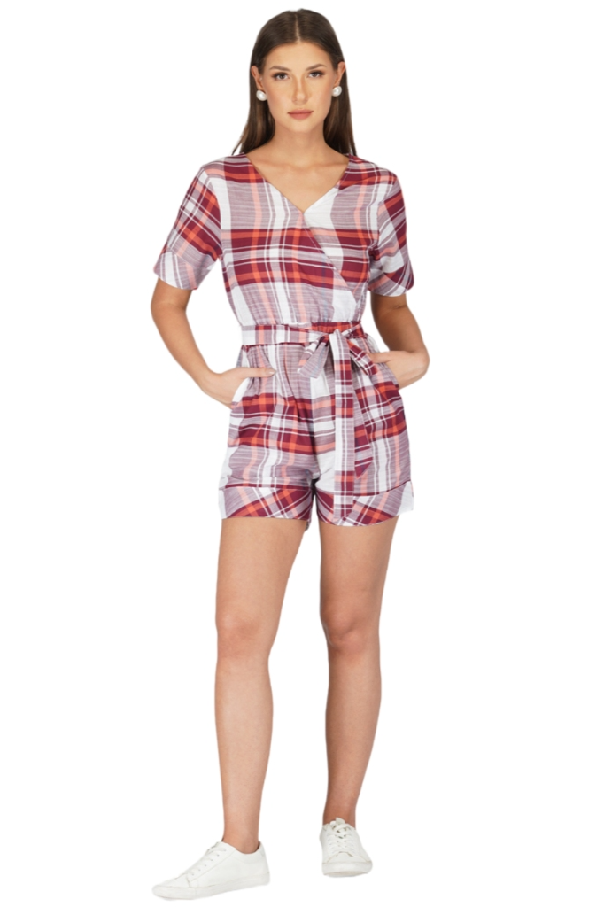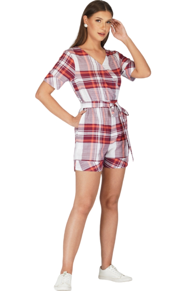 Give yourself an ultra-modern casual look with this stunning multi-colored check jumpsuit. Toe the line between the boardroom and happy hour with our exclusive range of jumpsuits and dungarees for women. A trendy one-step outfit, jumpsuits redefine regular wear for women. With their elegant design and longer length, they can be effortlessly worn from a power meeting to a night out with your girlfriends. Style With: Pair it with white strapy sandals and a sling bag to stride away in style for a casual brunch with friends.